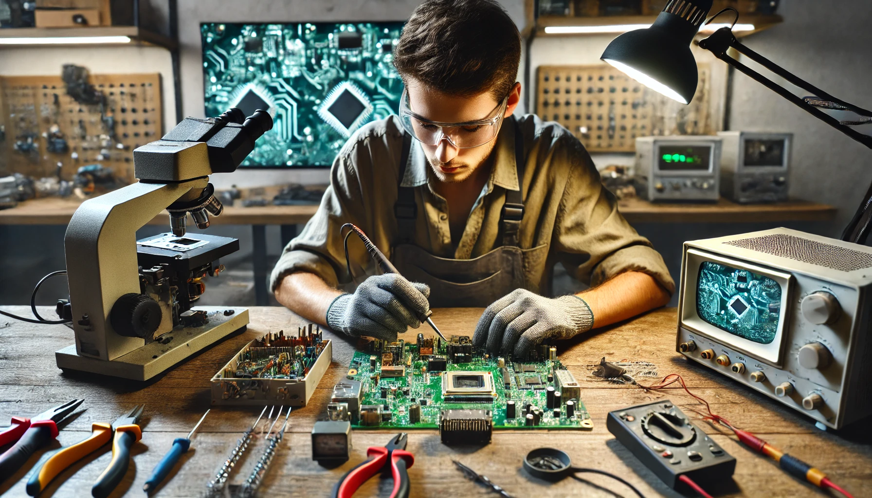 - عیبیابی و تشخیص مشکل اولین گام در تعمیر مین برد، شناسایی دقیق مشکل است. تکنسین باید به دقت تمامی علائم خرابی را بررسی کند و با استفاده از ابزارهای تخصصی، عملکرد مدارها و قطعات مختلف را ارزیابی کند. این مرحله میتواند شامل بررسی خازنها، ترانزیستورها، مقاومتها، ولتاژ ورودی و خروجی و سایر قطعات باشد.