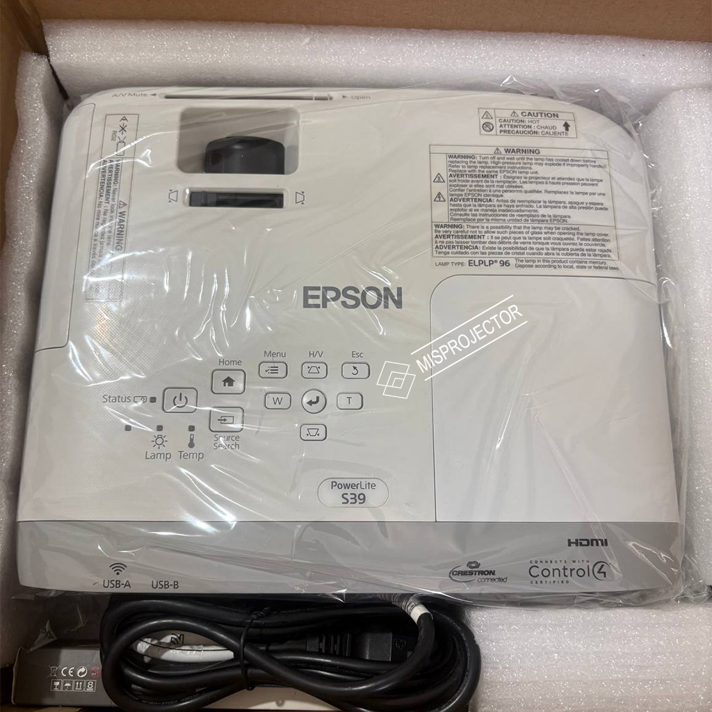 • Epson PowerLite S39 با فناوری ۳LCD و روشنایی ۳٬۳۰۰ لومن (رنگ و سفید) مناسب کلاسهای آموزشی، اتاقهای کنفرانس و استفادههای سازمانی است.