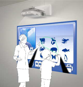 این ویدئو پروژکتور اولترا شورت ترو یا فاصله نزدیک می باشد و می توان در فاصله 40 سانتی متری از برد یا صفحه نمایش تصویری به بزرگی 100 اینچ فراهم کند.